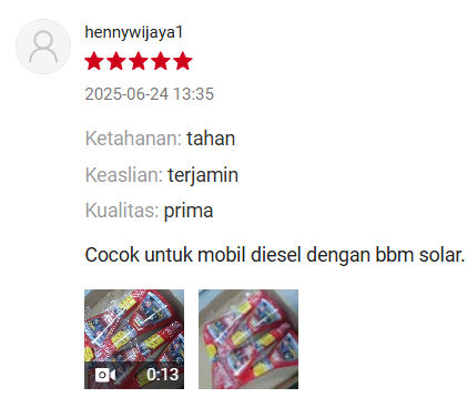 Untuk hasil optimal gunakan pada setiap kali pengisian bensin.